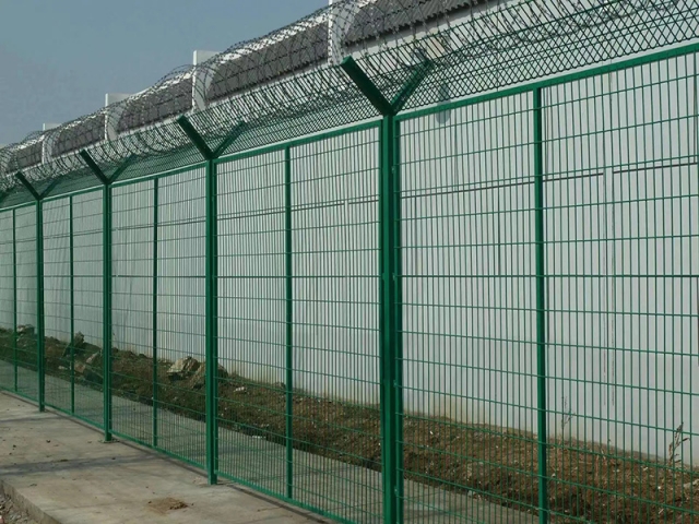 監獄護欄網也叫監獄圍墻網、監獄圍欄、監獄鋼網墻等,是非常重要的監獄安全防護設施,由焊接鋼網加蛇腹形刀片刺繩網組合而成。本產品具有結構新穎、堅固緊
